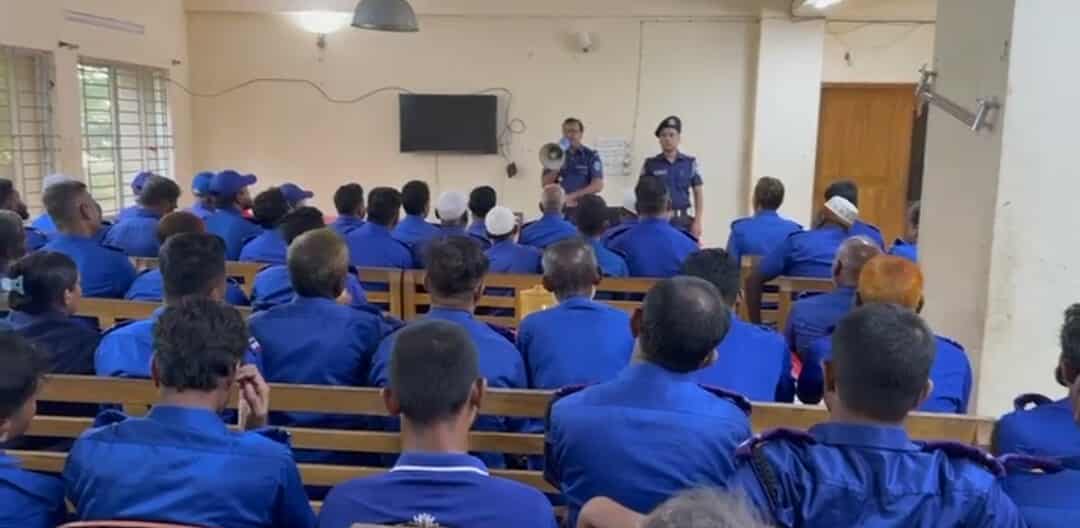 মঙ্গলবার (২৩ সেপ্টেম্বর) বিকেলে অনুষ্ঠিত মতবিনিময় সভাটি পরিচালনা করেন সেকেন্ড অফিসার মোঃ আরিফ। সভায় ওসি সাইফুল ইসলাম বলেন, “দুর্গাপূজা বাঙালি হিন্দু সম্প্রদায়ের অন্যতম বড় ধর্মীয় উৎসব। সকল ধর্মের মানুষের নিরাপত্তা নিশ্চিত করা আমাদের প্রধান দায়িত্ব। বিশেষ করে হিন্দুসম্প্রদায়ের এই উৎসবকে নির্বিঘ্ন ও শান্তিপূর্ণভাবে উদযাপন করতে গ্রাম পুলিশদের গুরুত্বপূর্ণ ভূমিকা রয়েছে, কারণ গ্রাম পুলিশরা হলেন মাঠপর্যায়ে আইন-শৃঙ্খলা রক্ষাকার অন্যতম সহায়ক শক্তি। তিনি গ্রাম পুলিশদের উদ্দেশ্য করে বলেন, আপনাদের সততা, দায়িত্ববোধ ও তৎপরতাই পূজার নিরাপত্তা নিশ্চিত করবে। তিনি তাদেরকে ইউনিফর্ম পরিধান, পরিচয়পত্র বহন এবং জরুরি যোগাযোগ নম্বর সঙ্গে রাখার বিষয়েও কঠোর নির্দেশনাও প্রদান করেন।