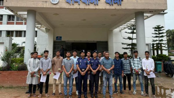 বৃহস্পতিবার (২সেপ্টেম্বর)দুপুর সাড়ে ১১ টায় থানায় নিজ কার্যালয়ে তাদের ফুল দিয়ে শুভেচ্ছা জানান ওসি সাইফুল ইসলাম।