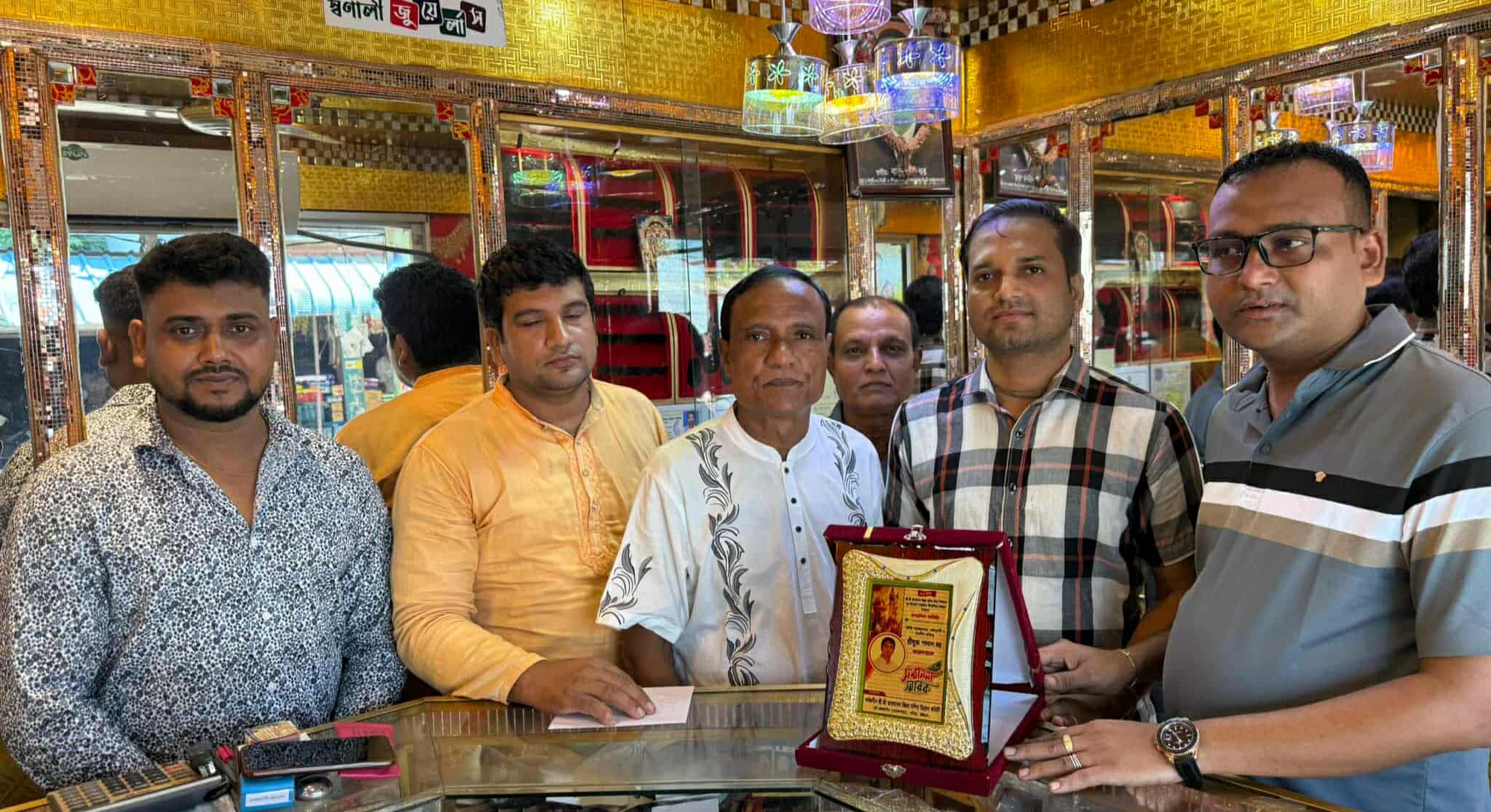 বিশিষ্ট সমাজসেবক, ধর্মানুরাগী ও দানশীল ব্যক্তিত্ব শ্রীযুক্ত পলাশ ধরকে সম্মাননা স্মারক প্রধান করা হয়েছে। গতকাল বিকালে মনসা চৌমুহনীস্হ ব্যবসায়ী প্রতিষ্টান স্বর্নালী জুয়েলার্সে সম্মাননা স্মারক প্রধান করেন শ্রীমন্দির কমিটির প্রধান উপদেষ্টা শ্রী স্বপন বসাক, সভাপতি শ্রী তপন বসাক, শ্রী সুমন ধর, শ্রী শাপলা বসাক, শ্রী বিশ্বজিৎ বিশ্বাস, শ্রী সঞ্জয় বসাক সহ অন্যারা।