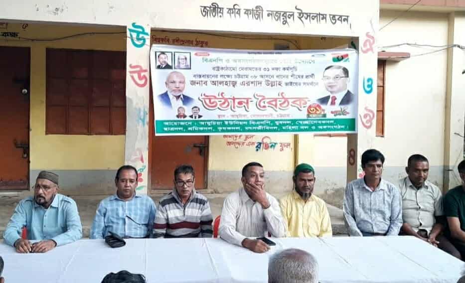 বাবর মুনাফ, বোয়ালখালী: রাষ্ট্র কাঠামো মেরামতের ৩১ দফা কর্মসূচী বাস্তবায়নের লক্ষ্যে চট্টগ্রাম-৮ আসনের ধানের শীষের প্রার্থী আলহাজ্ব এরশাদ উল্লাহ'র সমর্থনে বোয়ালখালী উপজেলার ৯নং আমুচিয়া ইউনিয়নের ৮নং ওয়ার্ডে উঠান বৈঠক অনুষ্ঠিত হয়েছে।
