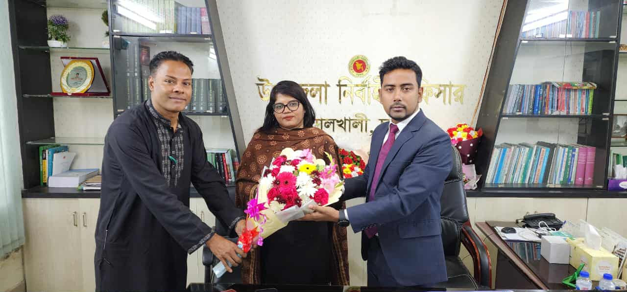বুধবার (৩ ডিসেম্বর) উপজেলা নির্বাহী কর্মকর্তার কার্যালয়ে অনুষ্ঠিত মতবিনিময় সভায় ইউএনওকে ফুলেল শুভেচ্ছা জানানো হয়। এসময় উপস্থিত ছিলেন উপজেলা সহকারি কমিশনার (ভূমি) কানিজ ফাতেমা।