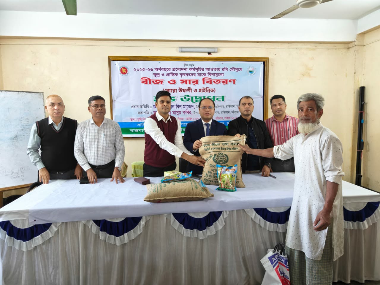 নেজাম উদ্দিন রানা, রাউজান (চট্টগ্রাম) :২০২৫-২৬ অর্থ বছরের প্রণোদনা কর্মসূচির আওতায় রবি মৌসুমে চট্টগ্রামের রাউজানের ৭৫০ জন ক্ষুদ্র ও প্রান্তিক কৃষকদের মাঝে বিনামূল্যে উফশী ও হাইব্রিড জাতের বীজ ও সার বিতরণ করা হয়েছে। রবিবার (৭ ডিসেস্বর) সকাল ১১টায় উপজেলা কৃষি বিভাগীয় প্রশিক্ষণ হলে এ সার ও বীজ বিতরণ করা হয়। রাউজান কৃষি সম্প্রসারণ অধিদপ্তরের বাস্তবায়নে ও উপজেলা প্রশাসনের সার্বিক সহযোগিতায় সার ও বীজ বিতরণ অনুষ্ঠানে প্রধান অতিথি ছিলেন উপজেলা নির্বাহী কর্মকর্তা জিসান বিন মাজেদ।