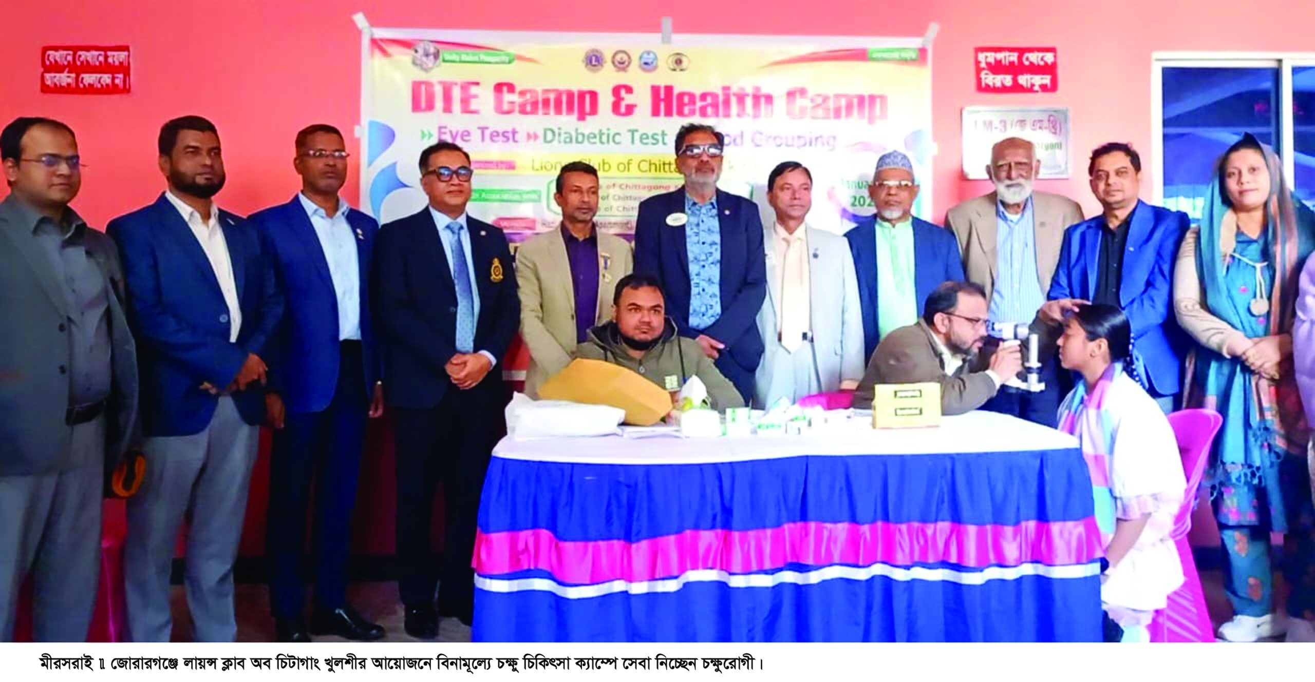 চিকিৎসা ক্যাম্পে সাধারণ মানুষের জন্য বিনামূল্যে চক্ষু পরীক্ষা, ডায়াবেটিস পরীক্ষা ও ব্লাড গ্রুপিংয়ের ব্যবস্থা রাখা হয়। লায়ন্স ক্লাব অব চিটাগাং খুলশীর সার্বিক ব্যবস্থাপনায় এবং সংগঠনের সদস্য ও সমাজসেবক লায়ন মাজহার উল্লাহ মিয়ার সৌজন্যে ক্যাম্পটি পরিচালিত হয়। এতে লায়ন্স চক্ষু হাসপাতালের অভিজ্ঞ চিকিৎসক ও কমফোর্ট হাসপাতালের প্যাথলজিস্টরা সেবাদানে অংশ নেন।
