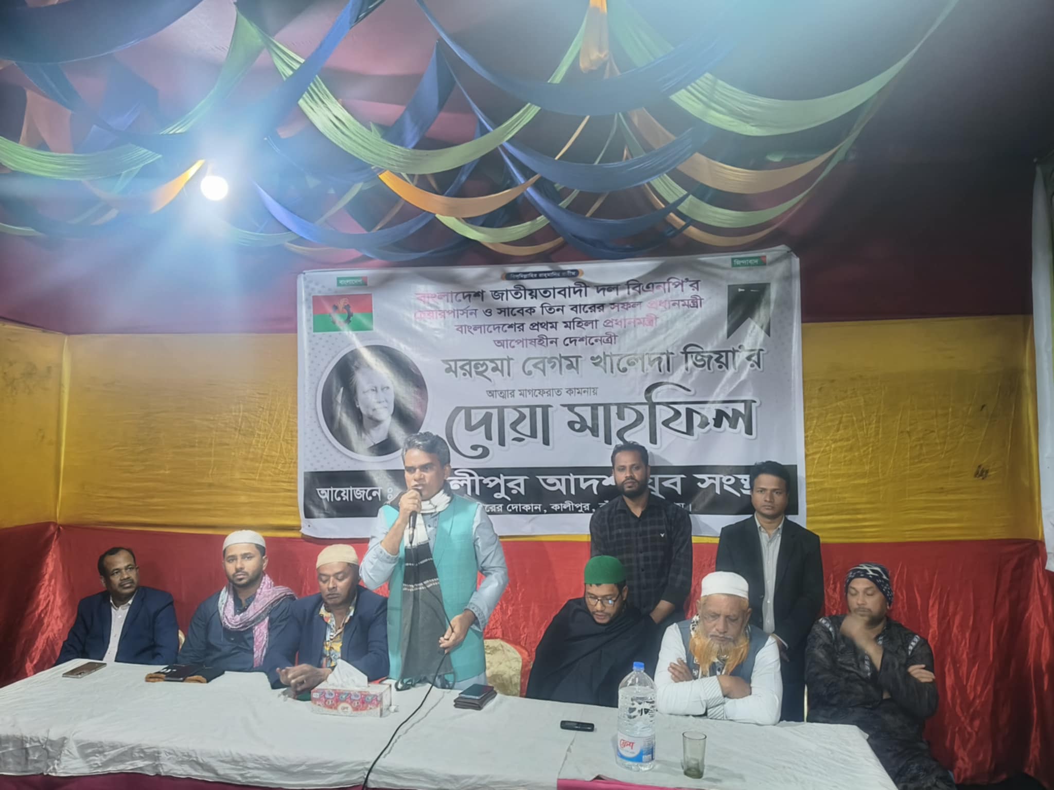 চট্টগ্রামের বাঁশখালী কালীপুর আদর্শ যুব সংস্থা'র উদ্যোগে সাবেক প্রধানমন্ত্রী,বিএনপির চেয়ারপারসন, দেশনেত্রী মরহুমা বেগম খালেদা জিয়ার আত্মার মাগফেরাত কামনায় দোয়া মাহফিল অনুষ্ঠিত হয়েছে।শুক্রবার (১৬ জানুয়ারি) উপজেলার