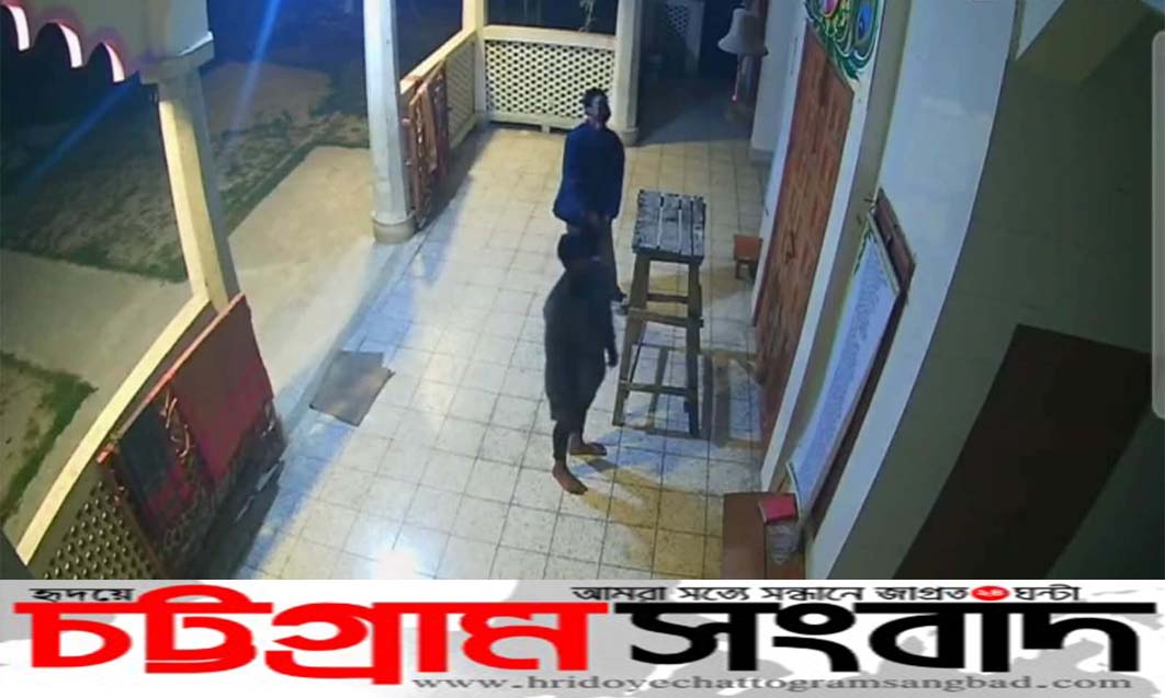 ধামের সিসিটিভি ক্যামেরার ফুটেজে দেখা গেছে, দুই ব্যক্তি ঘণ্টাটি সিলিং থেকে খুলে নিয়ে যেতে।