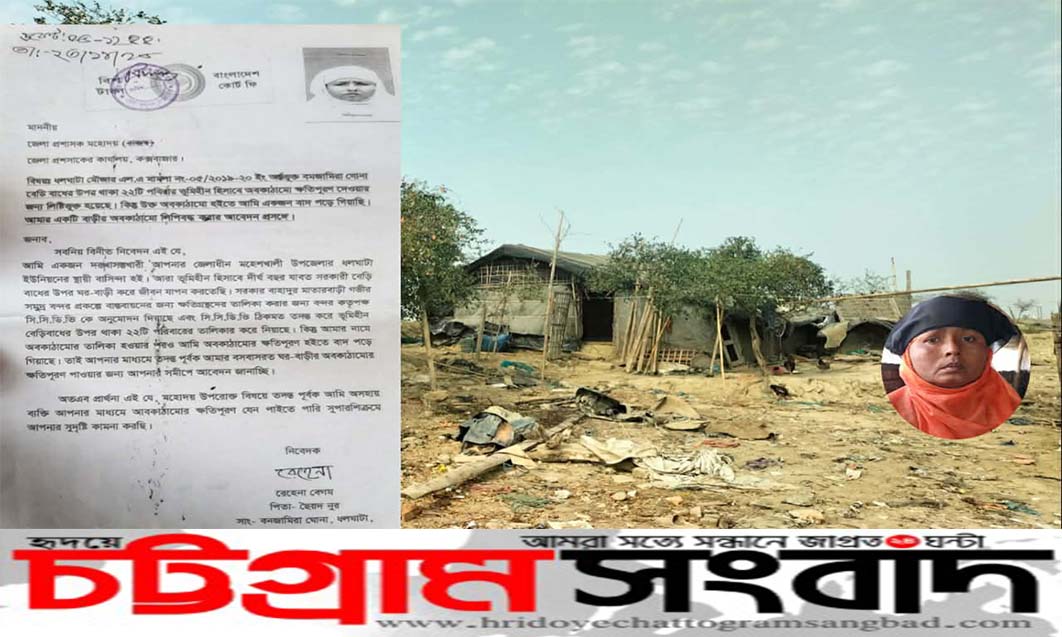 ভুক্তভোগী স্বামী পরিত্যক্তা রেহেনা বেগম অভিযোগ করেন, ধলঘাটা মৌজার এল.এ মামলা নং–০৫/২০১৯-২০ এর আওতায় বনজামিরা ঘোনা বেড়িবাঁধ এলাকায় বসবাসরত ভূমিহীন পরিবারগুলোর অবকাঠামো ক্ষতিপূরণের জন্য তালিকা প্রস্তুত করা হয়। মাতারবাড়ী গভীর সমুদ্র বন্দর প্রকল্প বাস্তবায়নের অংশ হিসেবে ক্ষতিগ্রস্তদের তথ্য সংগ্রহের দায়িত্বপ্রাপ্ত সার্ভে প্রতিষ্ঠান সিসিডিভি (CCDV) তদন্ত করে বেড়িবাঁধের ওপর বসবাসরত ২২টি ভূমিহীন পরিবারের নাম তালিকাভুক্ত করে।
