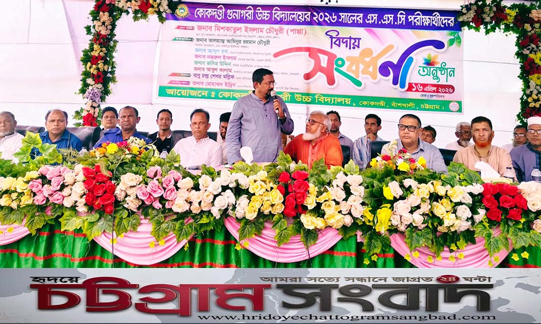 কোকদন্ডী গুনাগরী উচ্চ বিদ্যালয়ের ভারপ্রাপ্ত প্রধান শিক্ষক মোহাম্মদ ইদ্রিস এর সভাপতিত্বে বিদায় সংবর্ধনা অনুষ্ঠানে প্রধান অতিথি হিসেবে উপস্থিত ছিলেন চট্টগ্রাম দক্ষিণ জেলা বিএনপির যুগ্ম আহবায়ক মিশকাতুল ইসলাম চৌধুরী পাপ্পা।
