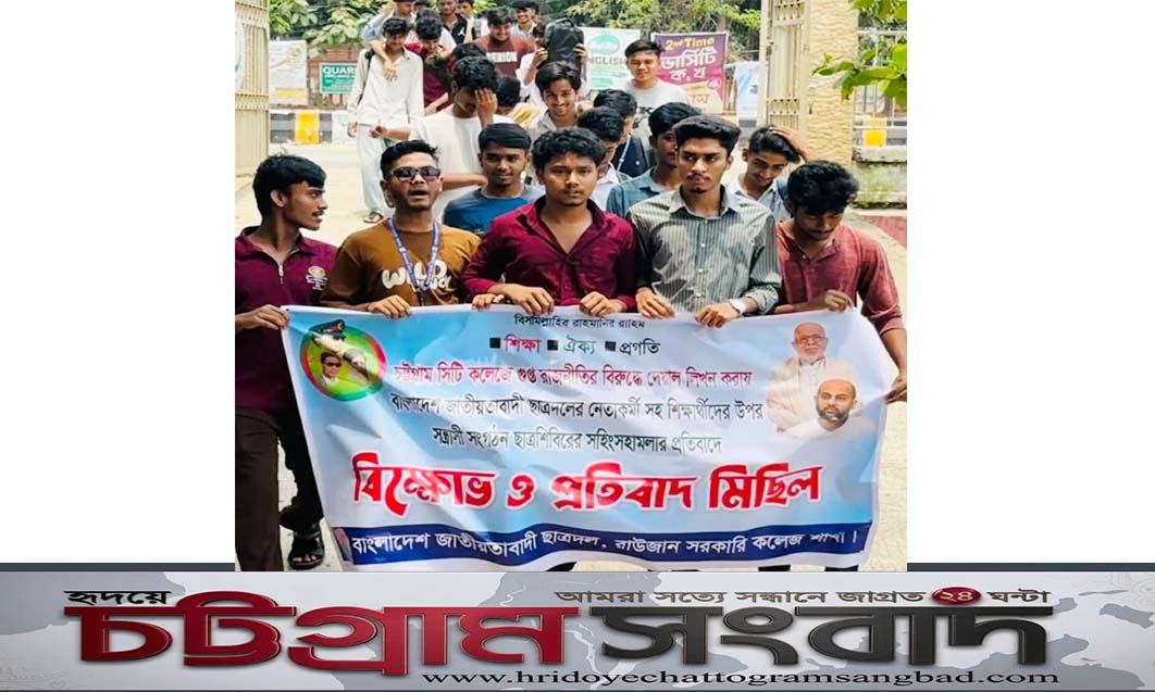 চট্টগ্রাম সিটি কলেজে গুপ্ত রাজনীতির বিরুদ্ধে দেয়াল লিখন করায় বাংলাদেশ জাতীয়তাবাদি ছাত্রদলের নেতাকর্মীসহ শিক্ষার্থীদের উপর ছাত্র শিবির কর্তৃক হামলার প্রতিবাদে বিক্ষোভ ও প্রতিবাদ মিছিল করেছে রাউজান সরকারি কলেজ ছাত্রদল।
